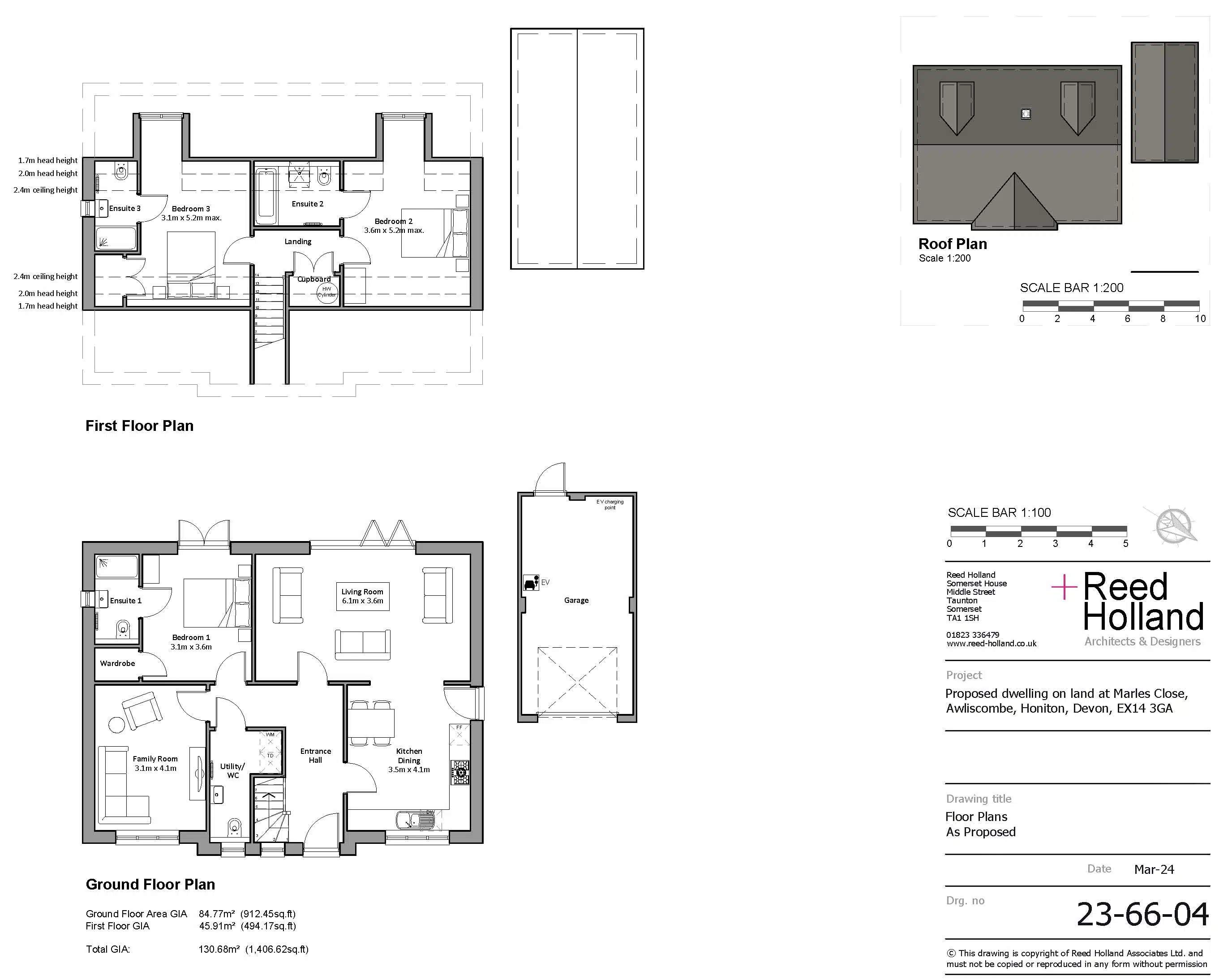 The proposed detached dwelling has a gross internal floor area of approximately 130.68 sqm (1,407 sqft) and there is a detached single garage and driveway to the side of the dwelling. The plot sits above the level of the road, has a gentle slope down from north to south and extends to approximately 600sqm (0.15 acres).