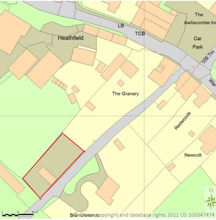 This single building plot is located in the popular village of Awliscombe, close to Honiton in East Devon, and offers outline planning approval for the demolition of an existing shed and erection of a new detached bungalow. The plot is approximately rectangular in shape and borders a residential property to the north, a small orchard to the west, Mill Lane to the east and benefits views over open countryside to the south. The outline planning approval requires matters of access, scale, layout and appearance of the new dwelling to be approved at a later reserved matters stage, although the Agents opinion is that there is potential on the plot for a well-proportioned bungalow or dormer bungalow. The plot is accessed off Mill Lane and currently benefits from two vehicular entrances. The plot extends to c. 0.17 acres / 0.07 ha.