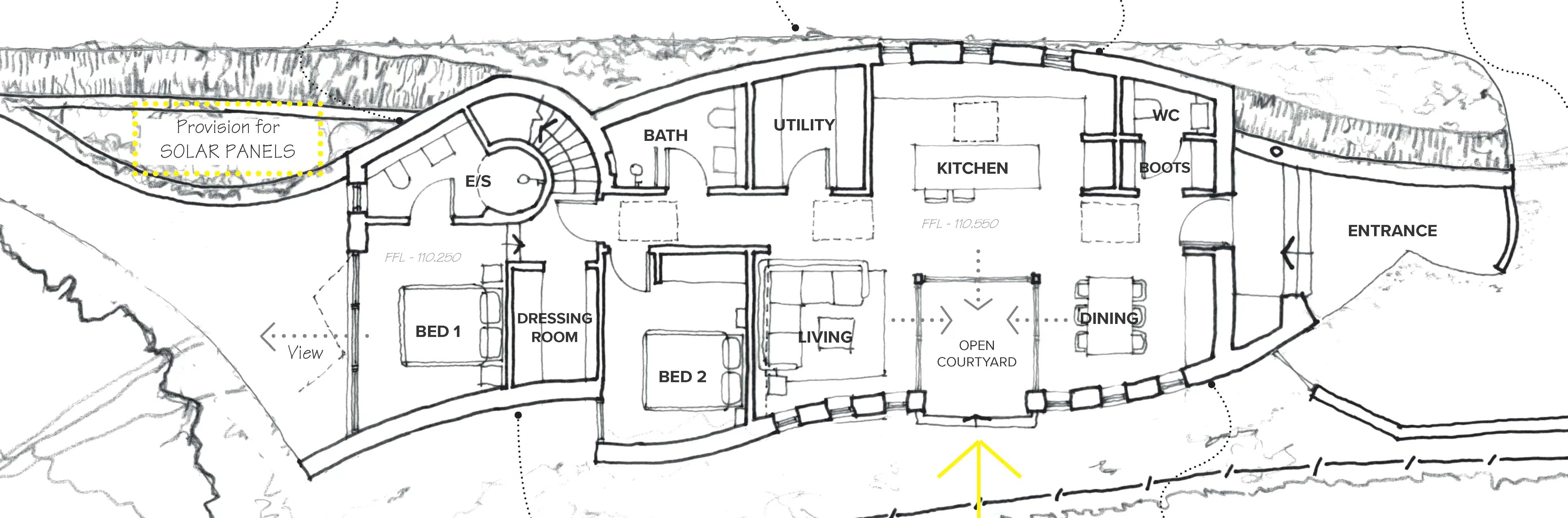 The proposed dwelling is contemporary in design, with a green roof system and high thermal insulation design, together with the majority of the windows facing south for solar gain. The internal floor area of the proposed dwelling is approximately 121.44sqm (1,307sqft), according to the CIL liability. The plot is relatively level and extends to approximately 0.05 hectares (0.12 acres).