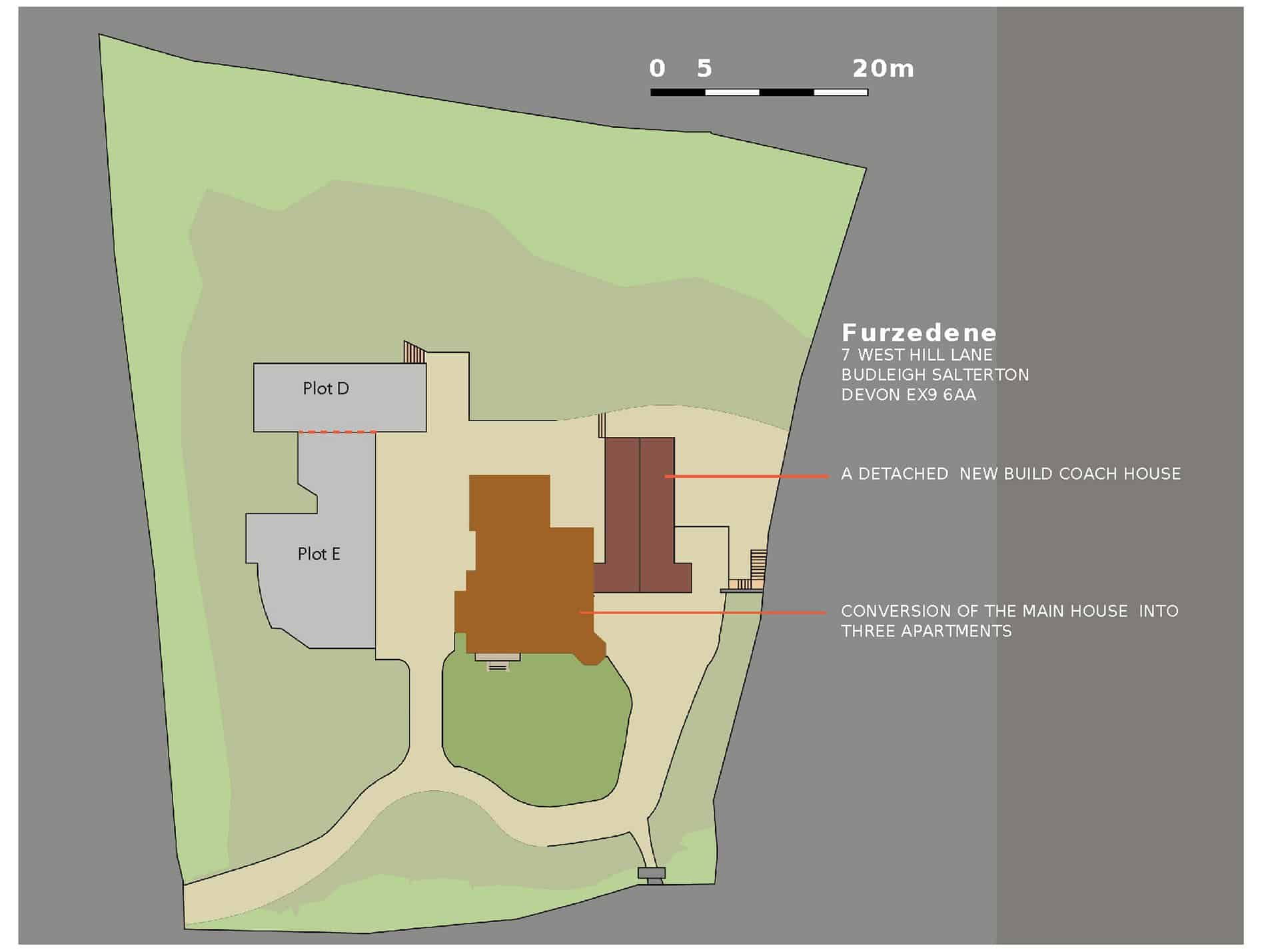Planning permission has been granted by East Devon District Council to provide division of Furzedene House horizontally into three apartments and for 3 new build building plots within the grounds for 3 houses. There may be scope to convert the main house into 4 large apartments (subject to the requisite consents) by splitting the lower ground and ground floors into two apartments rather than the currently approved one large duplex unit.