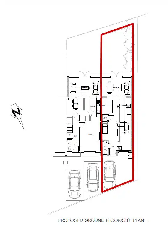 View showing the plot adjacent to existing dwelling (garage to be removed)