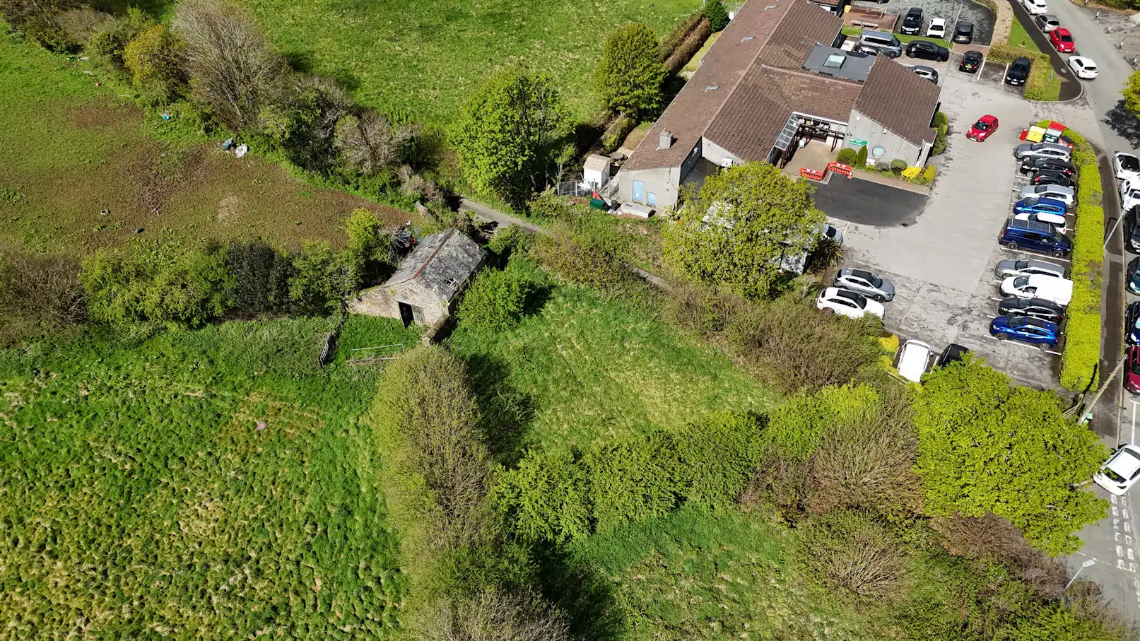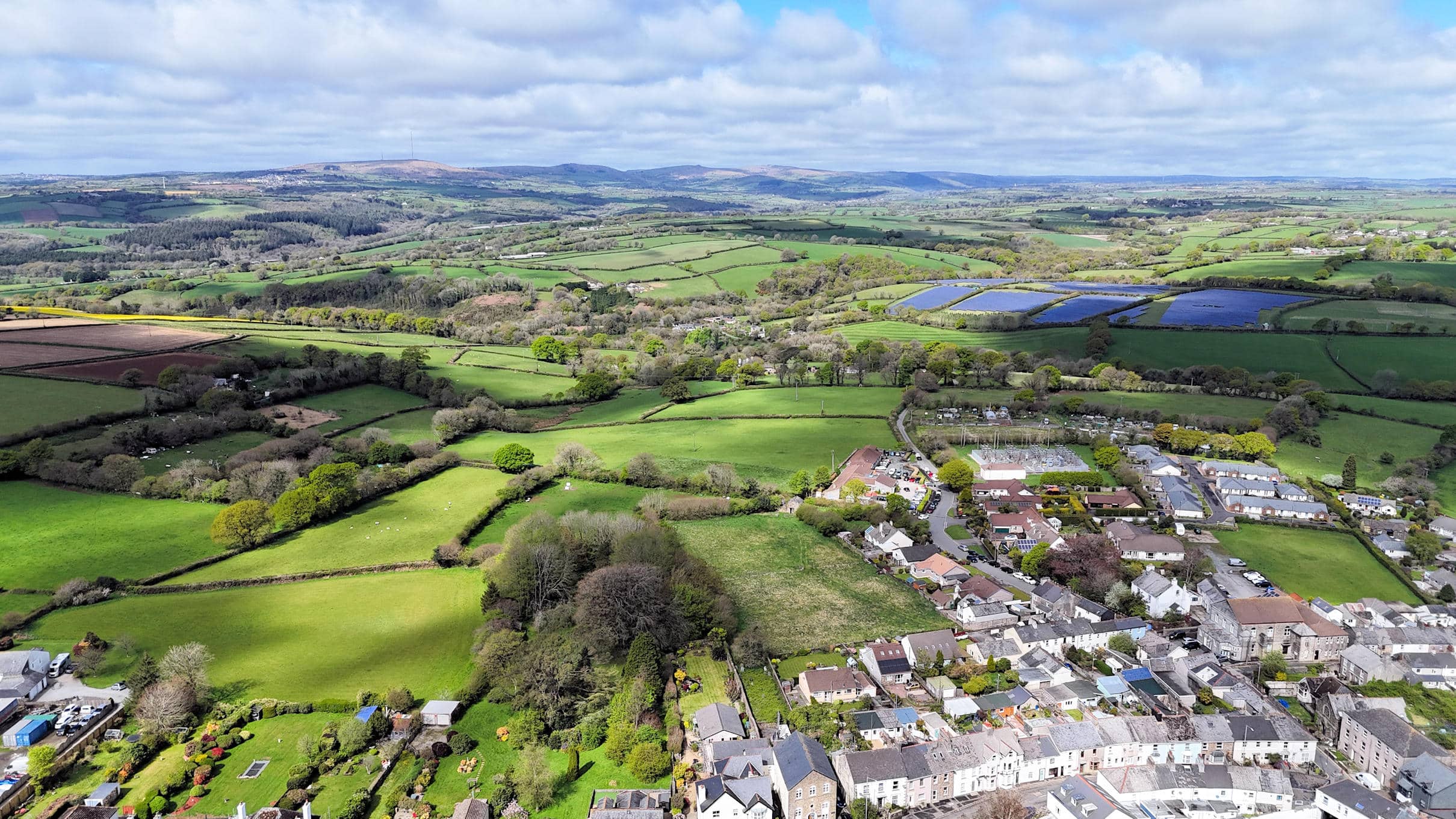 Aerial view over the site and Callington