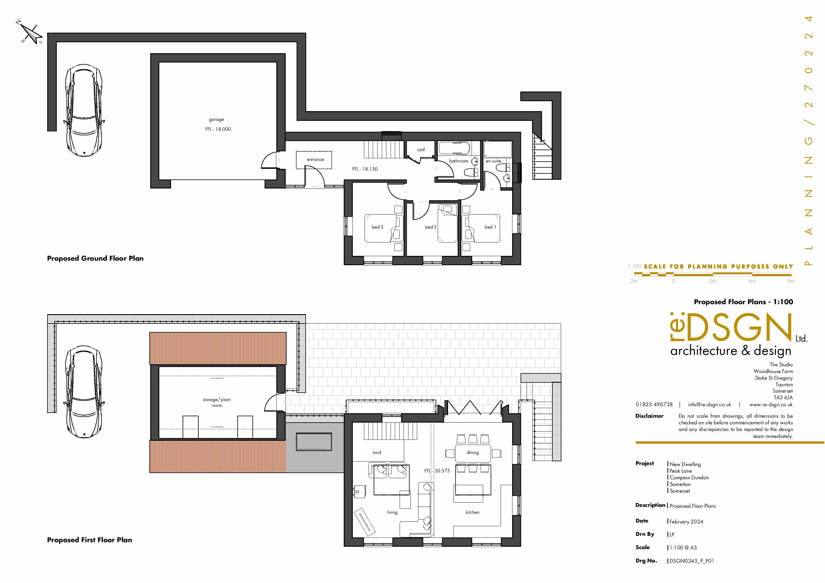 KLP are delighted to offer for sale this well located building plot located on the west fringe of Compton Dundon offering beautiful views to the west across open countryside. The plot is approximately square in shape and extends to c. 0.06 hectares/0.16 acres and is accessed from its west boundary from Peak Lane. The land is currently laid to grass and rises from the road to the rear boundary. The north, east and south boundaries are defined and established by hedges/post and wire fencing, the west boundary is open onto peak Lane. The approved dwelling is a reverse level two storey detached house extending to c.1025sqft with link attached garage. On the ground floor are 3 bedrooms (one ensuite) and a bathroom with an entrance hall also enabling access to the garage. The first floor is open plan with living room, kitchen and dining area, leading to the rear terrace and garden.