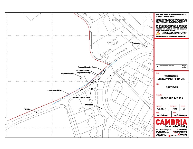 Proposed access - opposite Westernlea