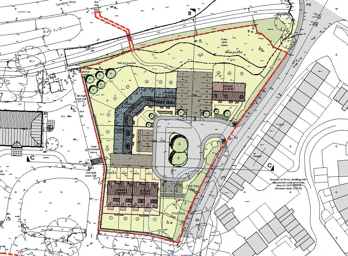 revised to just two plots (13 and 14) to avoid the pipe. Work has already been undertaken on the site and Plots 1 to 4 are well progressed with the