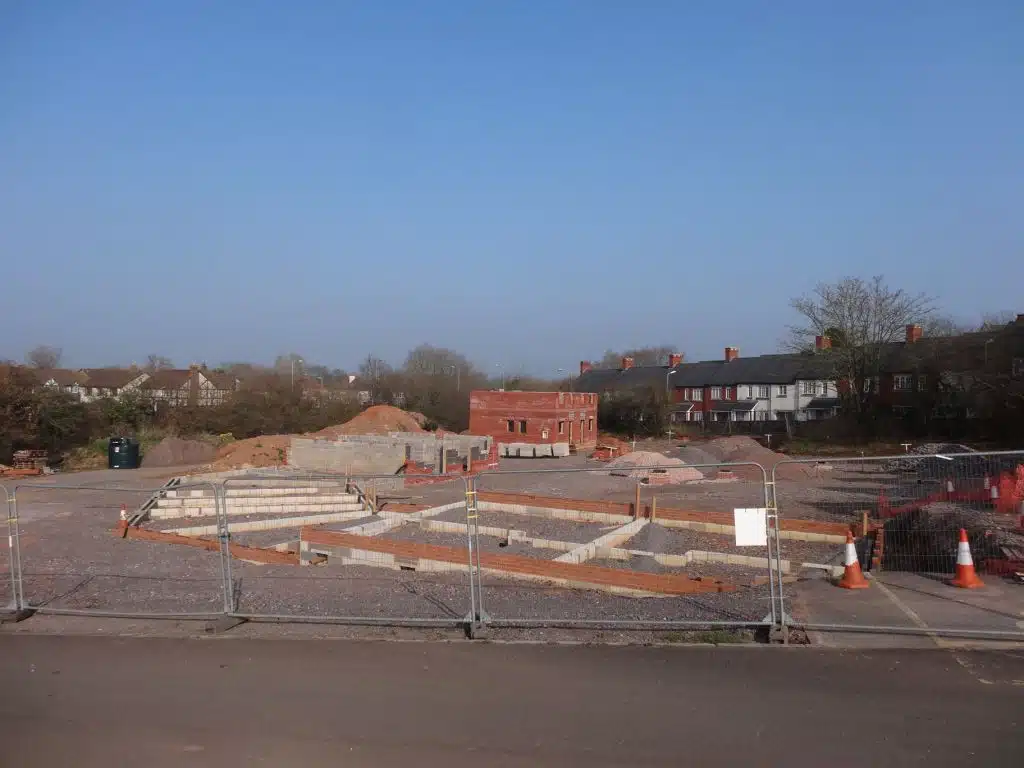 View showing part completed dwellings