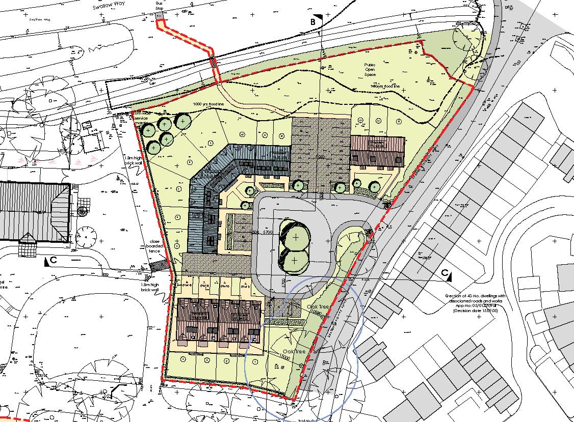 revised to just two plots (13 and 14) to avoid the pipe. Work has already been undertaken on the site and Plots 1 to 4 are well progressed with the