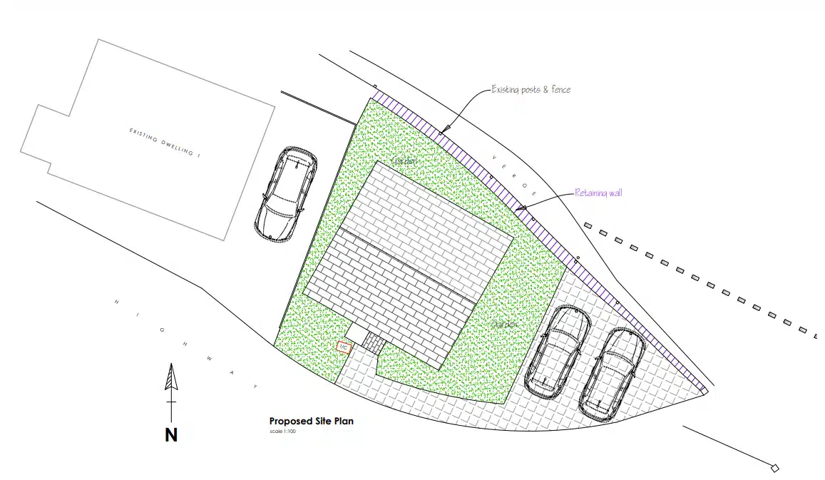 An opportunity to acquire a level building plot with detailed planning permission (ref. 21/02448/FUL) for the construction of a new detached house. From the approved plans, the new dwelling is shown with accomodation comprising of an entrance hall, W.C., lounge and kitchen/dining Room on the ground floor. On the first floor, two bedrooms are proposed along with a bathroom and study/store room. The proposed property is shown from the plans with a gross internal floor area extending to c. 76.86sqm (827.3sqft). Externally the property will have a small garden area to the side and rear and two off road parking spaces.