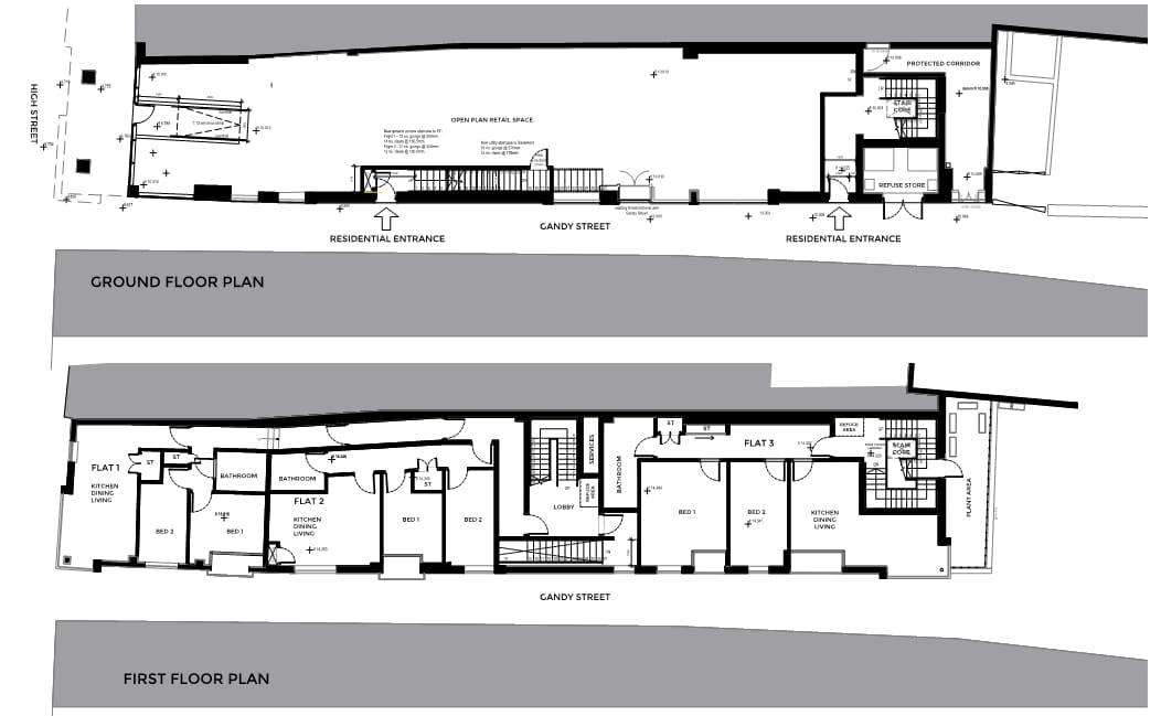 Situated in the heart of the city centre in Exeter, this development opportunity proposes the formation of eight new two bedroom apartments at 228 High Street. Presently, the existing structure comprises a three storey building with basement - part of the basement and the ground floor are currently leased by Costa Coffee (Note: the freehold of these parts of the building do not form part of the sale). The approved development proposes conversion of the existing first floor (previous office/commercial space) to form three apartments, and conversion of the existing second floor (previous office/commercial space) to form two further apartments. Three additional apartments are then proposed by new build development on the second floor (one apartment) and creation of an entirely new third floor (two apartments).