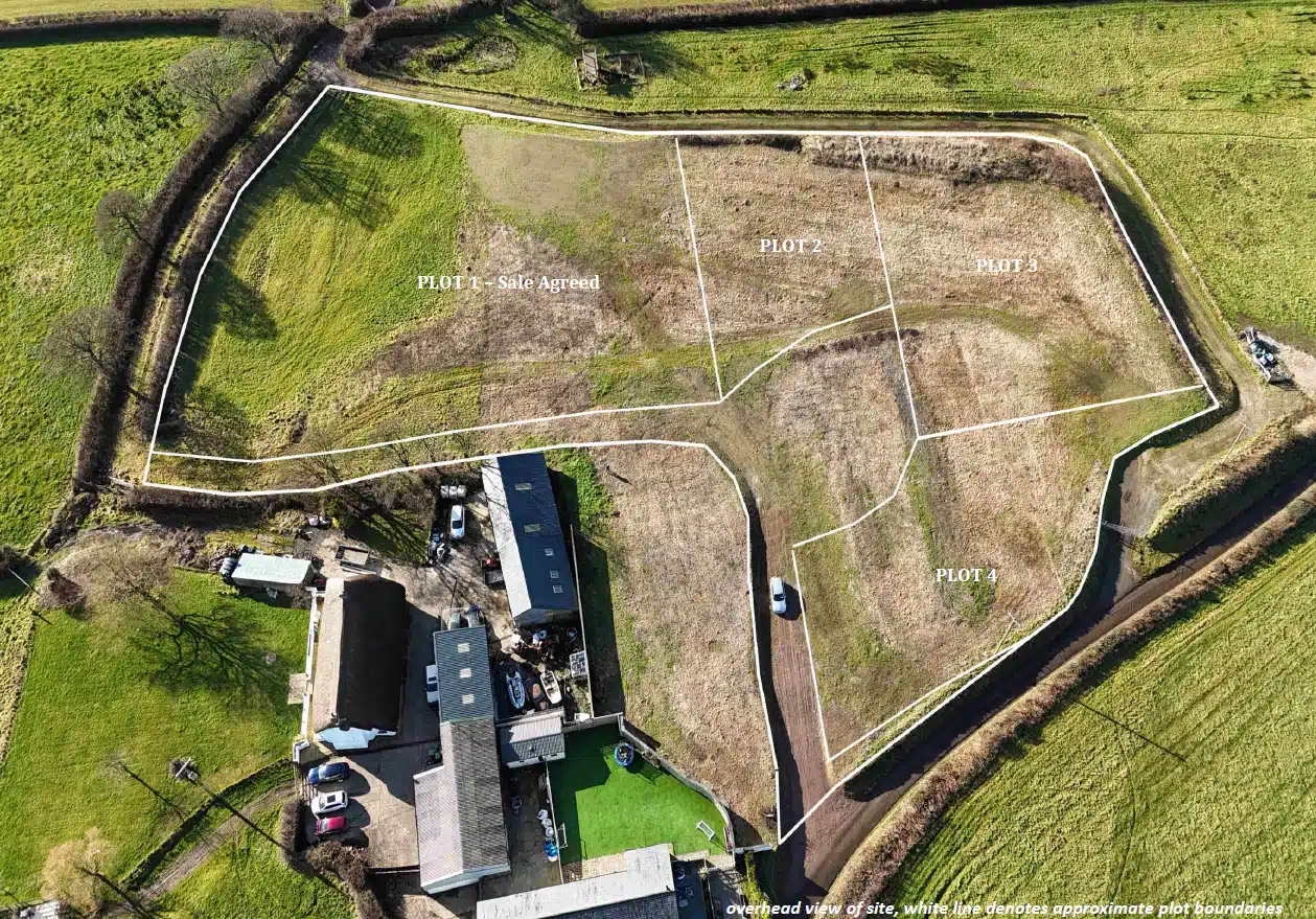 KLP are delighted to offer for sale these 4 individual building plots set in a stunning semi rural location a short distance to the east of the hamlet of Hollocombe. The land has a very gently fall east to west and offers beautiful expansive countryside views. The plots are located to the north and west of Smythen Farm, a single access will serve all four plots. The approved drawings show a detached double garage with each plot. We are advised as follows re approximate plot and dwelling sizes: