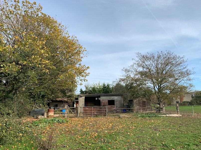 View showing existing barn and stables