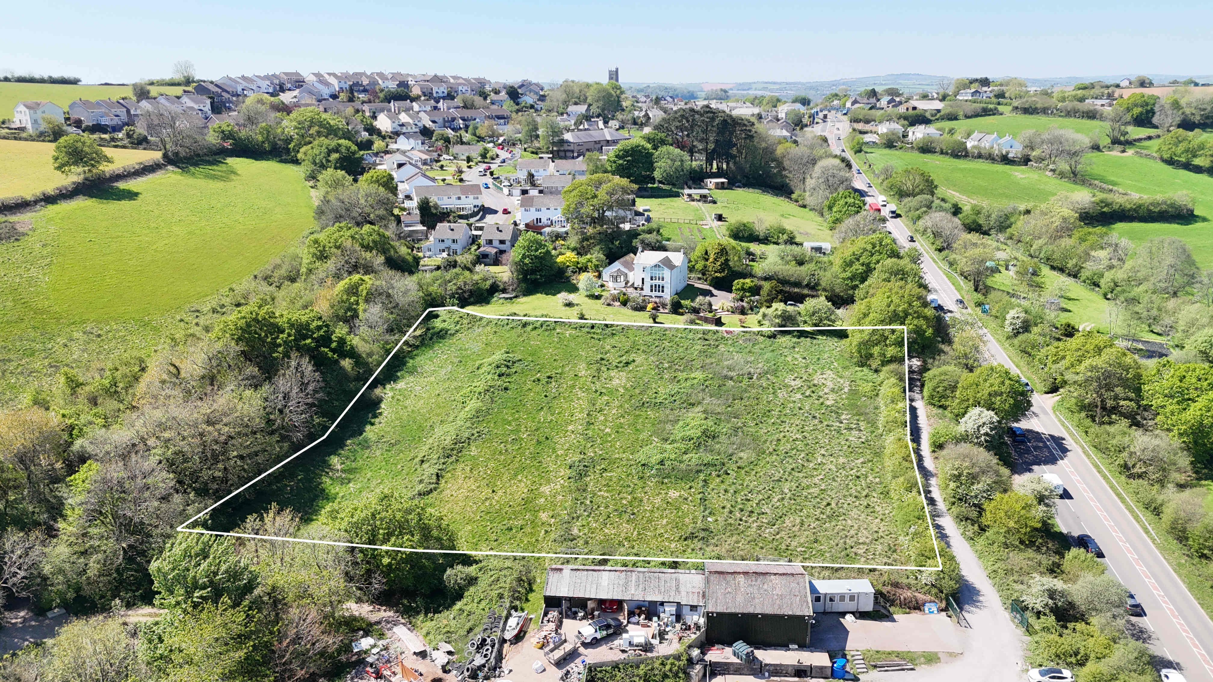 This well located greenfield potential development opportunity is currently the subject of an affordable led outline planning application for up to 10 dwellings, the application was validated 12 June 2024. We understand that a determination of this application will shortly be made by Cornwall Council. The land which is approximately rectangular in shape, lies immediately west of a house called Moorview and extends to approximately 0.85ha/2.1 acres, situated on the western fringe of Landrake offering beautiful countryside views. The land is paddock, laid to grass and falls gently from west to east. The illustrative site layout plan submitted as part of the application shows 10 dwellings with a new vehicular access off New Road and two proposed pedestrian accesses, one from the north west corner of the site onto New Road and one from the south west corner onto the lane which joins with School Road leading to the village centre.