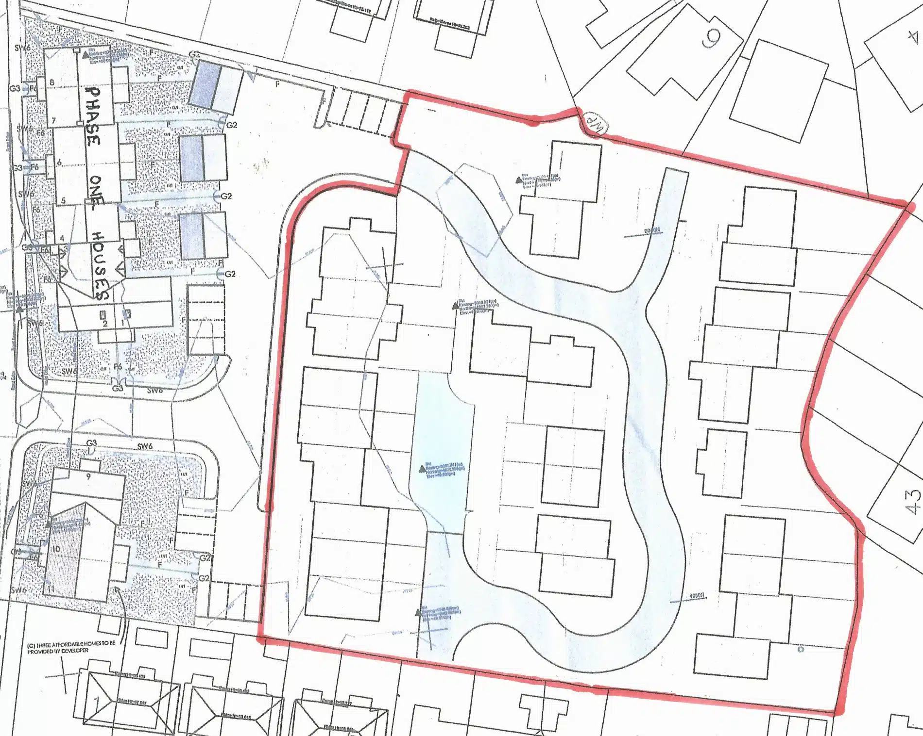 PLANNING: A scheme for 27 dwellings was historically sketched up by a developer (who has since ceased trading) for the site (see below), and a scheme for 11 dwellings (including 4 affordable and 7 self-build market plots) was submitted by the vendor as an outline planning application (Ref.PA14/02356), although this was recommended for approval planning was not granted due to protracted S106 negotiations regarding the estate road.