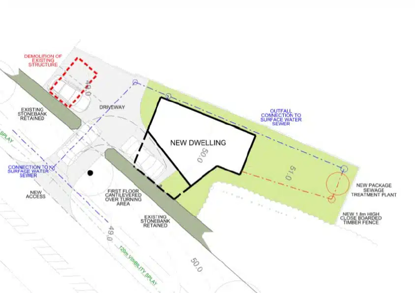 Comprising part of a former rear garden of a dwelling off Cott Road in Lostwithiel, this single building plot offers outline planning approval for the construction of a new detached dwelling. Although all matters are reserved for future consideration in terms of the scale and design of the new dwelling, the indicative plans submitted with the outline application show a new two storey detached house with a gross internal floor area extending to c. 90sqm (969sqft). The new dwelling will be accessed via a new private entrance off the A390 which will in turn lead to a off road parking and turning area. The new dwelling will also benefit from gardens, primarily situated to the east of the new property and there will be delightful countryside views to the north west