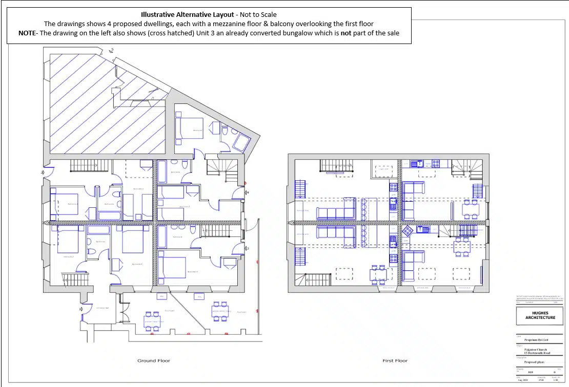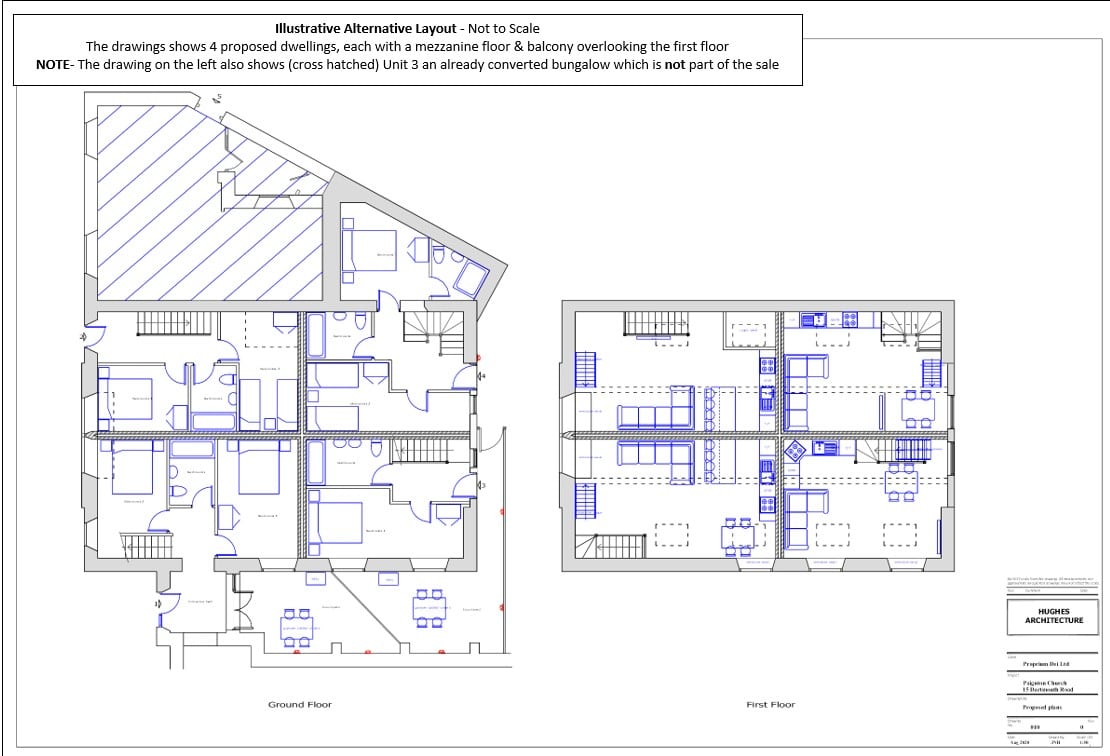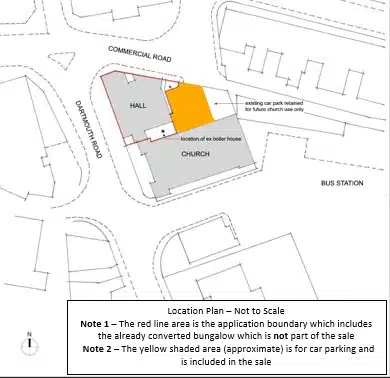 PAIGNTON - KLP are delighted to offer this centrally located conversion opportunity of a former church hall to form 4 x two storey dwellings units. Planning Permission and Listed Building Consent was granted for five units in total, the fifth unit has already been converted and comprises an attached bungalow, this is not part of the sale. We understand that the property is of solid masonry construction with stone elevations beneath a pitched slate roof. Internally the property has timber floors, painted plaster walls and a vaulted ceiling with a small single storey section offering access onto Dartmouth Road. An adjacent car parking area is included in the sale accessed from Commercial Road, see location plans below.
