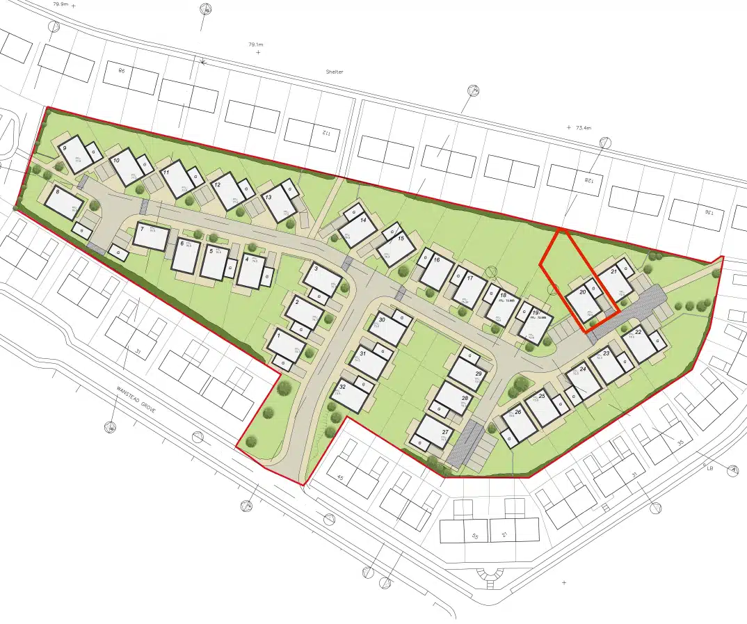 West Park consists of a site of 1.33ha, formerly the site of West Park School, but subsequently granted outline planning permission (ref. 15/00486/OUT) for the construction of 32 self-build dwellings. The site is currently under construction with several houses completed/nearing completion, others at an early stage of build and other plots awaiting commencement.
