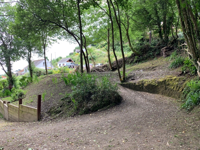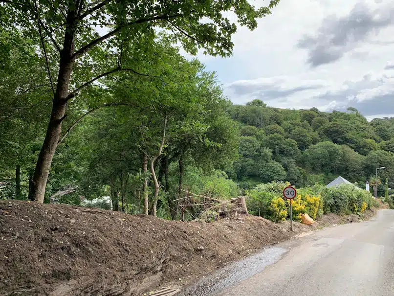 View from Landaviddy Lane showing the earth bank which is the southern boundary of the plot