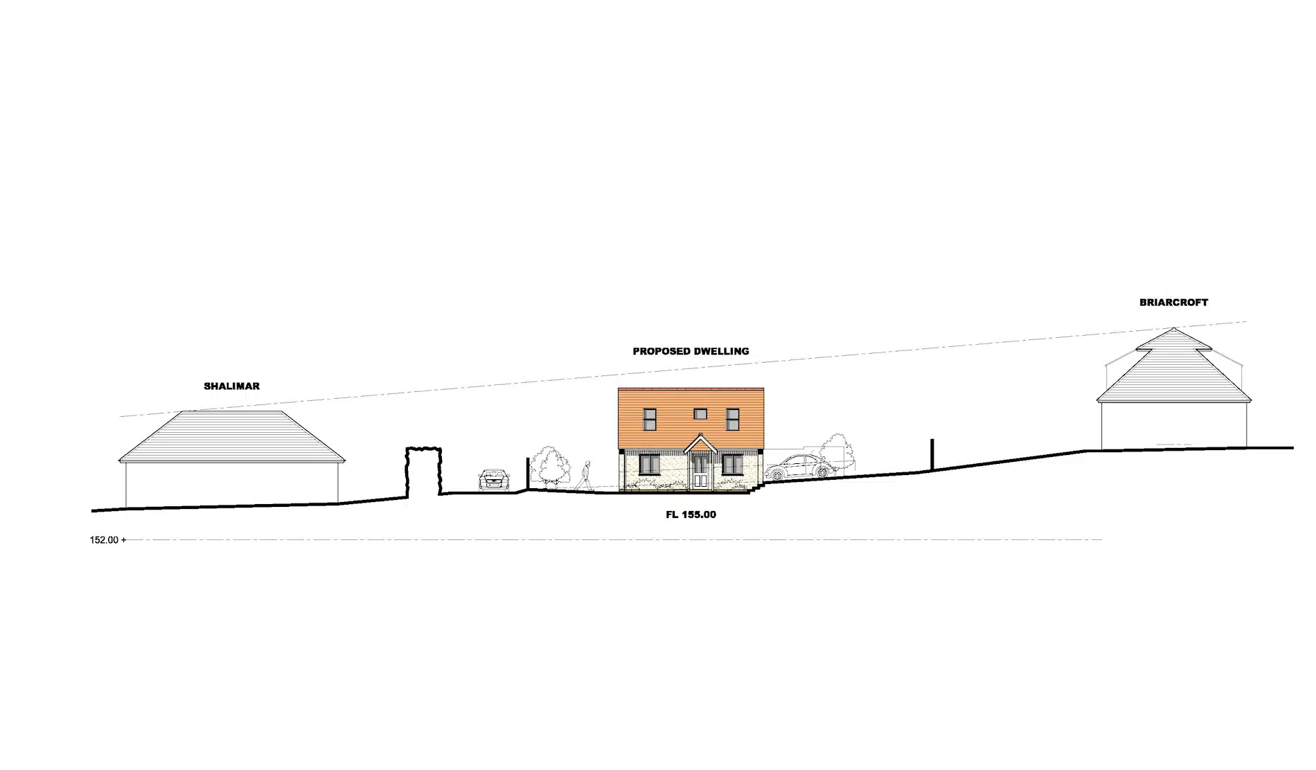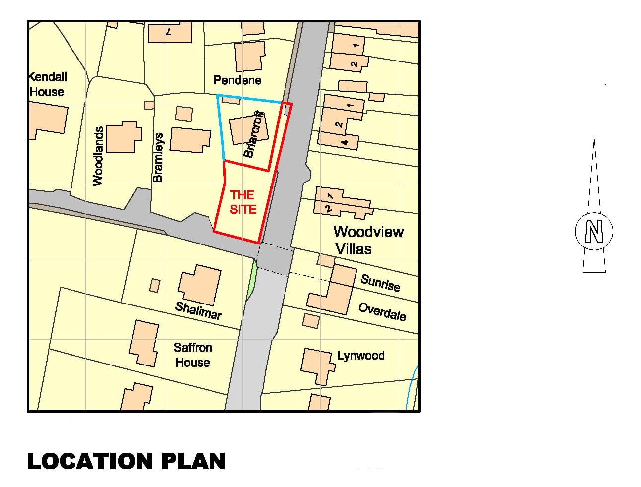 The plot extends to approximately 0.10 acres, and the existing footpath which currently stops to the north of Briarcroft, is proposed to be continued down the road along the frontage of both the existing and proposed dwellings. This will allow a new vehicular access for the plot and parking and turning areas for the new dwelling, as well as providing a safer access for the existing dwelling.
