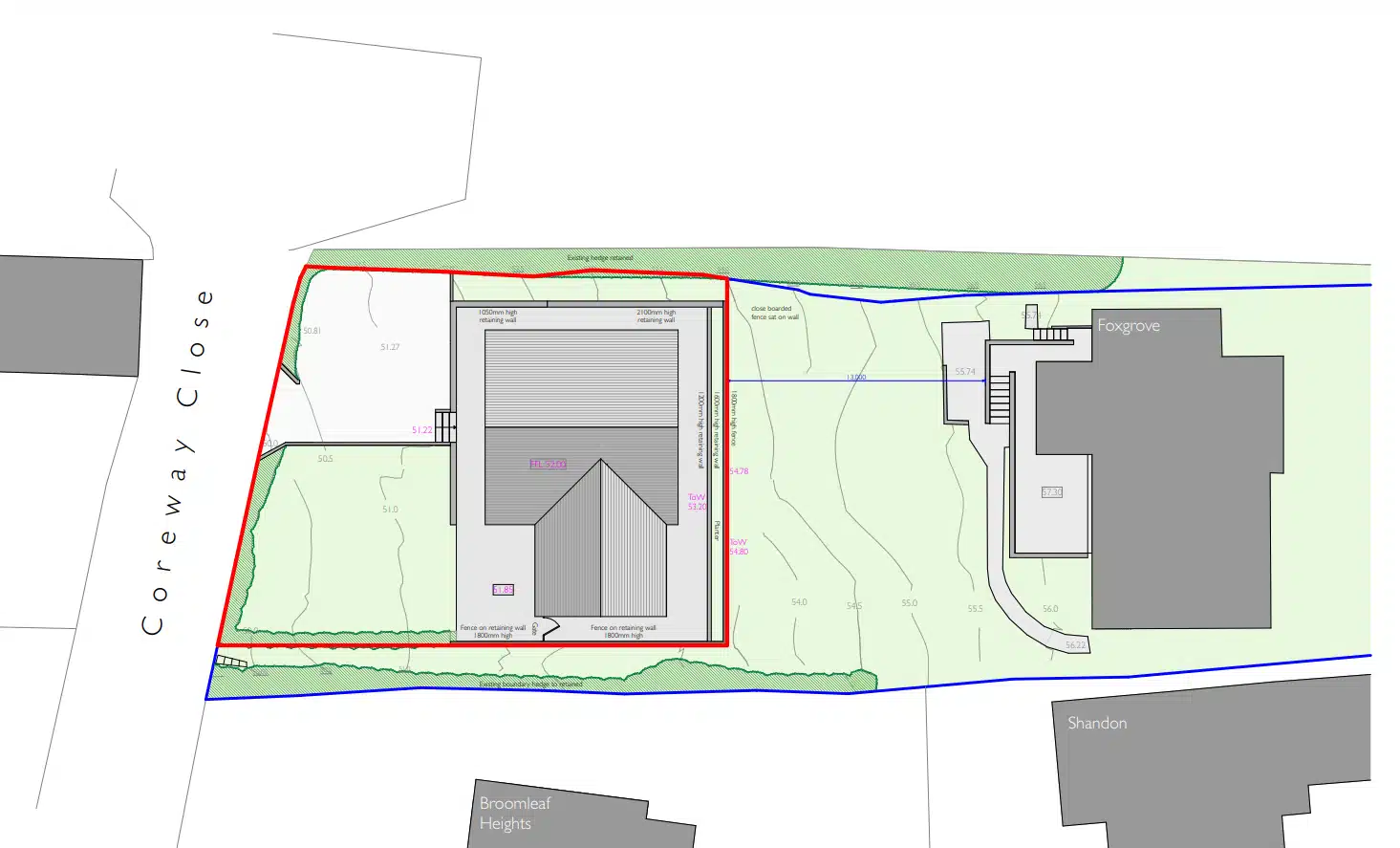 This single building plot, located in the cul-de-sac of Coreway, is set in an elevated position overlooking the town of Sidmouth and the East Devon coastline. The plot benefits from a grant of reserved matters planning approval (ref. 22/1252/RES) for the construction of a new detached bungalow. The proposed property is shown on the approved plans with a gross internal floor area of c. 107sqm (1152sqft) and with accommodation to include an entrance lobby, open plan kitchen/living room/dining area, three bedrooms (master en-suite) and a further bathroom. Outside, an off road parking/turning area is proposed along with a garden area to serve the new property. The plot extends to c. 0.16 acres / 0.06 ha.
