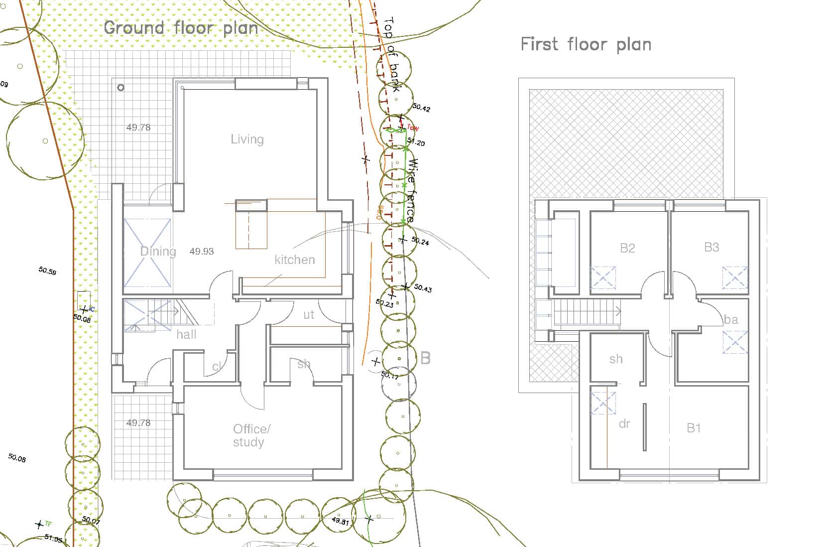 This is a rare opportunity to acquire a building plot in this sought-after South Hams village on the River Dart. The plot is situated off the Paignton Road on the north eastern edge of the village and the proposed plans show a detached house with a gross internal floor area of approximately 136.5sqm (1,470sqft). Although the current plans show three bedrooms (one ensuite) and a bathroom on the first floor and an open plan kitchen/dining area, lounge, utility, hall, wc and study with shower room on the ground floor, clearly this could either be rearranged to create 4 bedrooms or the study and shower room could be simply used as a master bedroom with ensuite on the ground floor. The existing access to the property is to be modified with a new entrance to the existing dwelling and a separate new access drive to the new dwelling, both being relocated further west along the road to improve visibility splays. The works to create these new accesses for both the existing and new dwelling would be at the cost and responsibility of the purchaser to undertake and comply with planning and highways regulations as part of the overall development of the plot.