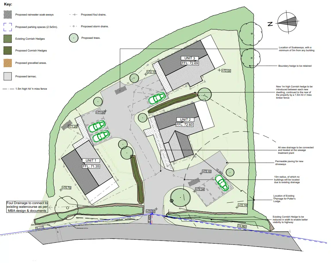 This superb development site, extending to 0.2 ha / 0.49 acres, is situated between the village of St Issey and Tredinnick, in the hamlet of Trenance. The site is proposed to be developed to provide three new high quality detached houses, each offering open plan living on the ground floor and with four bedrooms on the first floor.