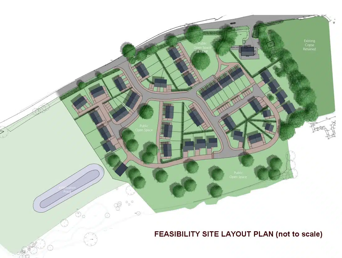 FOR SALE BY INFORMAL TENDER FRIDAY 22nd JULY. This is a fantastic opportunity to acquire a 3.49ha (8.62 acres) development site with outline planning permission for up to 60 dwellings situated on the south western edge of this popular village just to the west of The Blackdown Hills (AONB). The site is ideally located for both village life and great communication links to the nearby M5, being approximately midway between the Exeter and Taunton M5 junctions with access at either Cullompton or Tiverton junctions, and the mainline railway station approximately 3 miles distant at Tiverton Parkway. The site is relatively level from south west to north east with a gradual fall from the road along the north west boundary down to the mill leat to the south east where one of the proposed open spaces will be located.
